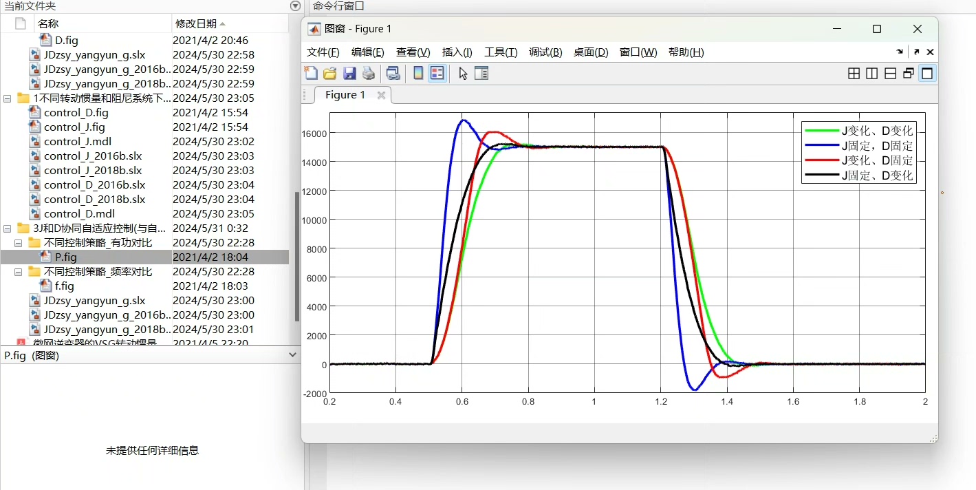 首先,我们考虑最简单的固定参数情况:转动惯量J和阻尼系数D保持不变。在这种情况下,我们可以观察到VSG系统的状态变化。