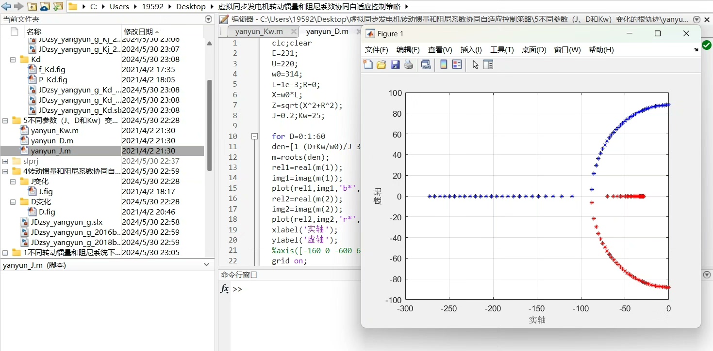 MATLAB/Simulink虚拟同步发电机VSG转动惯量和阻尼系数协同自适应控制仿真模型 资料丰富附参考文献 内容包括0转动惯量和阻尼系数固定下的dwdt和deltaw变化轨迹;1不同转动惯量和阻尼系统下的输出有功动态响应;2调节系数KjKd对频率波动的影响;3J和D协同自适应控制(与自身比较);4转动惯量和阻尼系数协同自适应J和D的变化情况;5不同参数(J、D和Kw)变化的根轨迹。 自适应惯量阻尼控制,并网型VSG,电压电流双环控制,所提控制策略不仅考虑了转动惯量的变化,还考虑了阻尼系数的变化,在抑制频率变化率的同时也抑制了频率的偏差量;与传统定参数虚拟同步发电机控制和转动惯量自适应控制策略相比,所提控制策略能够进一步改善频率响应特性和输出有功响应特性。