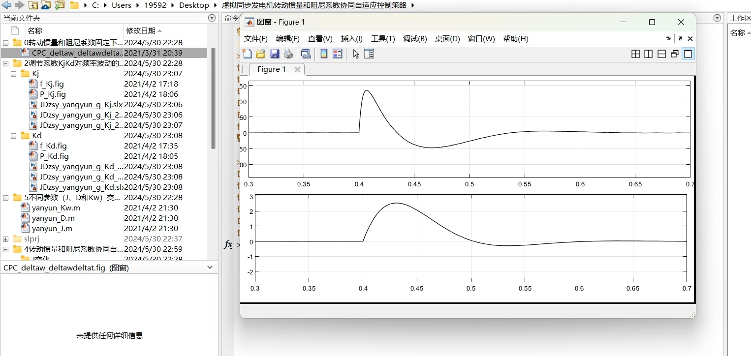 在固定J和D的假设下,仿真结果显示系统在受到外部扰动(如负载变化或电源波动)时,频率变化率(dω/dt)和频率偏差量(Δω)呈现出特定的轨迹。具体来说,当负载增加时,系统频率会快速下降,随后由于阻尼作用逐渐恢复。