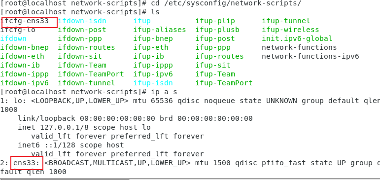 根据图片可以看到网卡是ens33,对应配置文件是ifcfg-ens33: