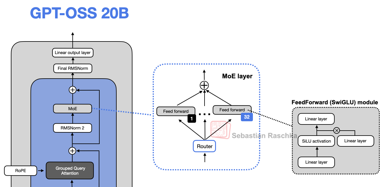 这是自 GPT-2 以来 OpenAI 首次公开大型的、完全开源的权重模型。早期的 GPT 模型展示了 Transformer 架构的可扩展性。2022 年发布的 ChatGPT 通过展示其在写作和知识(以及后来的编码)任务中的实际应用价值,使这些模型成为主流。如今,他们分享了期待已久的权重模型,其架构包含一些有趣的细节。