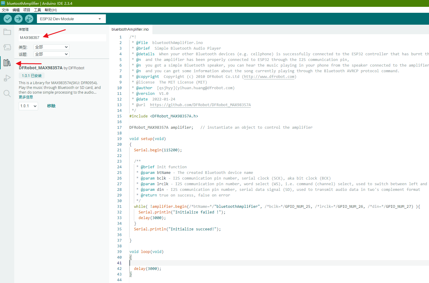 ESP32蓝牙驱动MAX98357对音频音乐播放