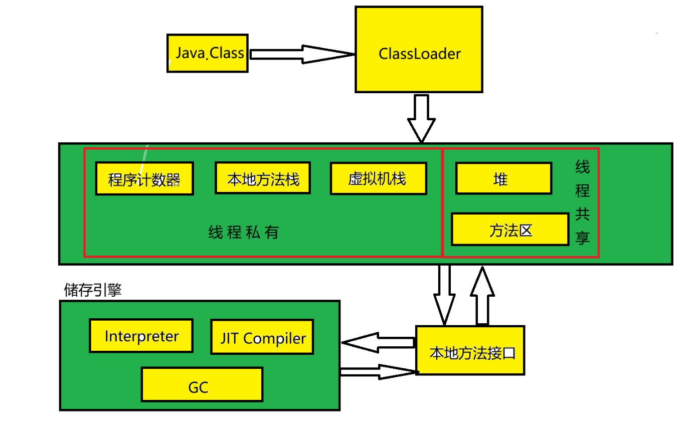 本地方法栈:JVM运行时数据区的一部分,线程私有,专门用于本地方法(Native Method)的执行----非java语言编写的,如C和C++编写的方法。类似虚拟机栈,服务的不是java方法而是本地方法方法。