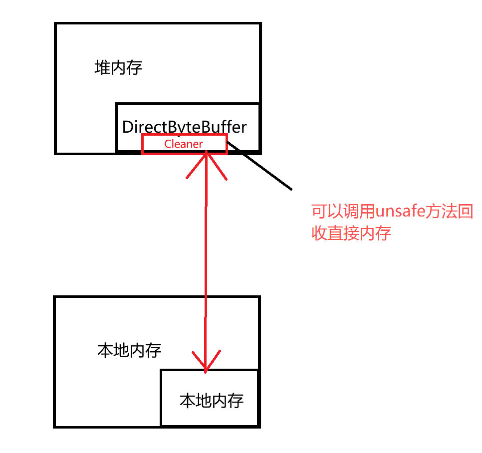 直接内存是不由JVM管理的,但java的DirectByteBuffer会通过虚引用(Cleaner)来关联直接内存,当后续DirectByteBuffer被GC回收后,Cleaner会触发操作系统(调用unsafe)回收对应的直接内存。
