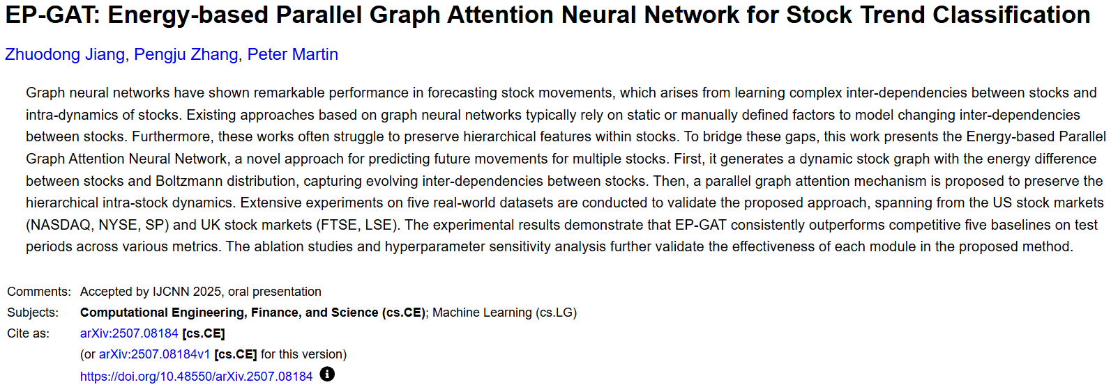 本文为《 EP-GAT: Energy-based Parallel Graph Attention Neural Network for Stock Trend Classification 》的阅读笔记,原文链接: https://arxiv.org/abs/2507.08184v1。