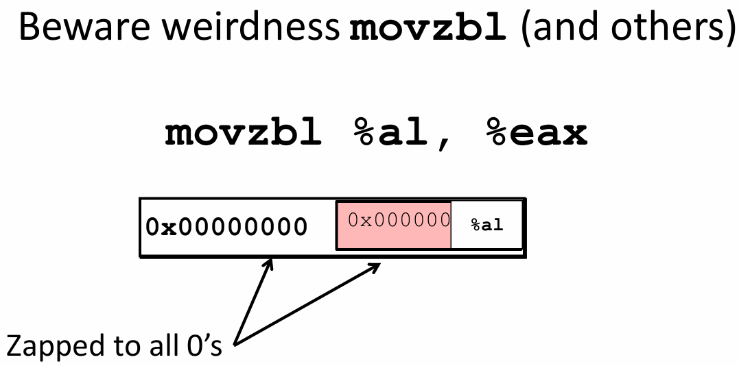 movzbl是"Move Zero-Extended Byte to Long"的缩写,即把 8 位的%al扩展为 32 位的%eax,高位用 0 填充(Zero-Extended)。 - 为什么需要这一步?: