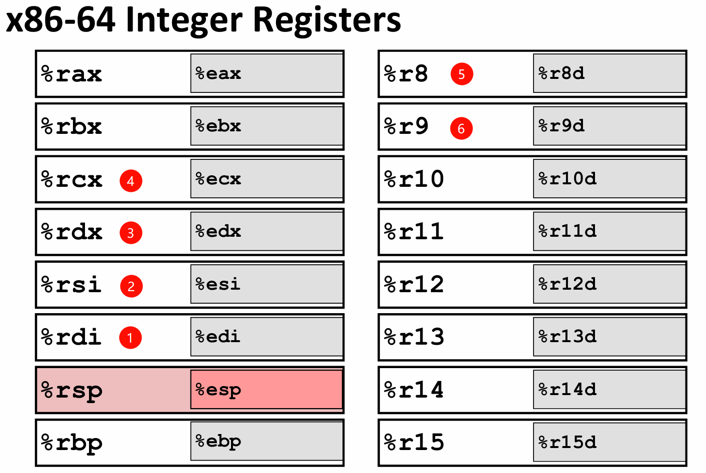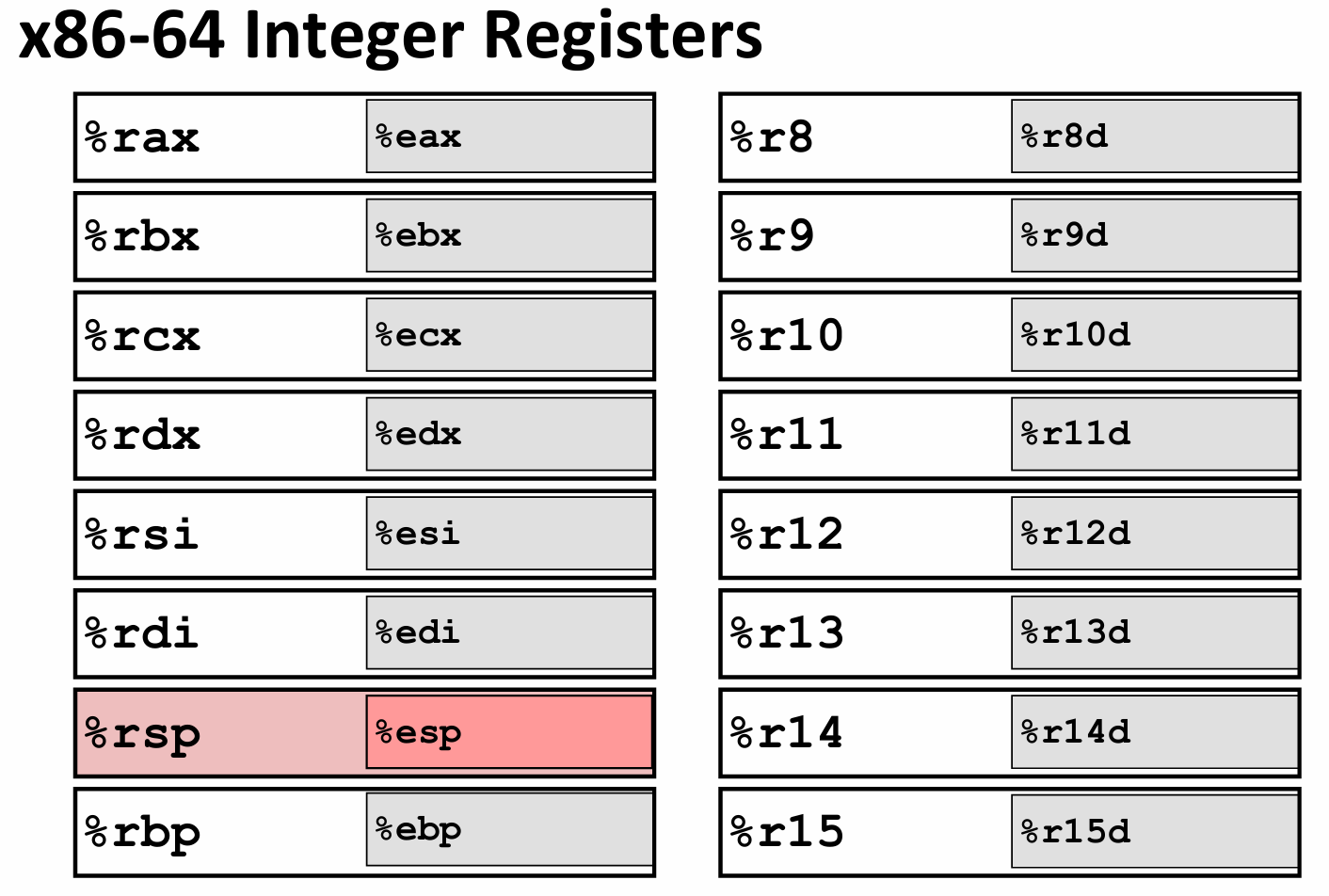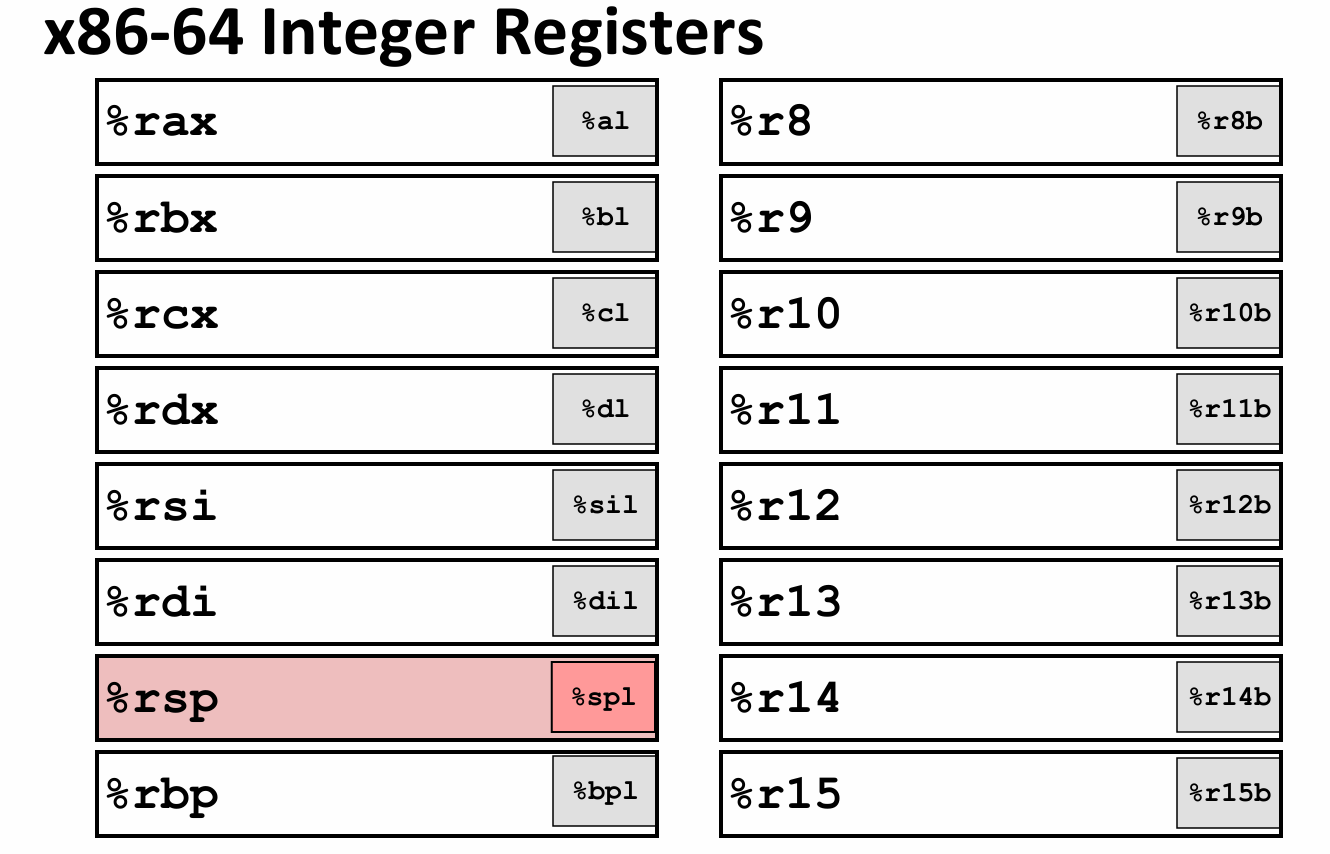 - x86-64 架构下的整数寄存器(CPU 内部用于临时存储整数、地址等数据的高速空间)