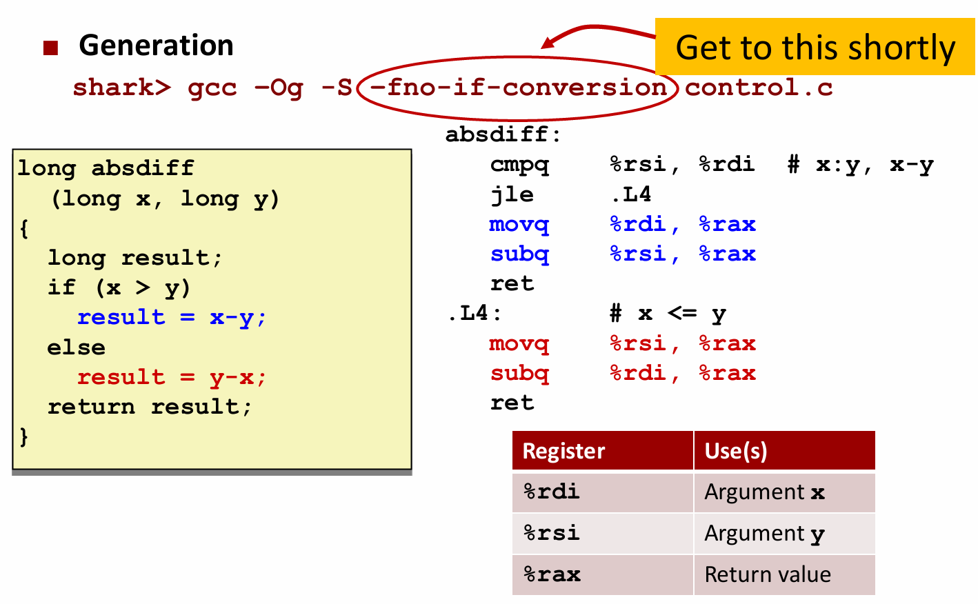 x(%rdi)和y(%rsi),通过cmpq设置标志位; - 用