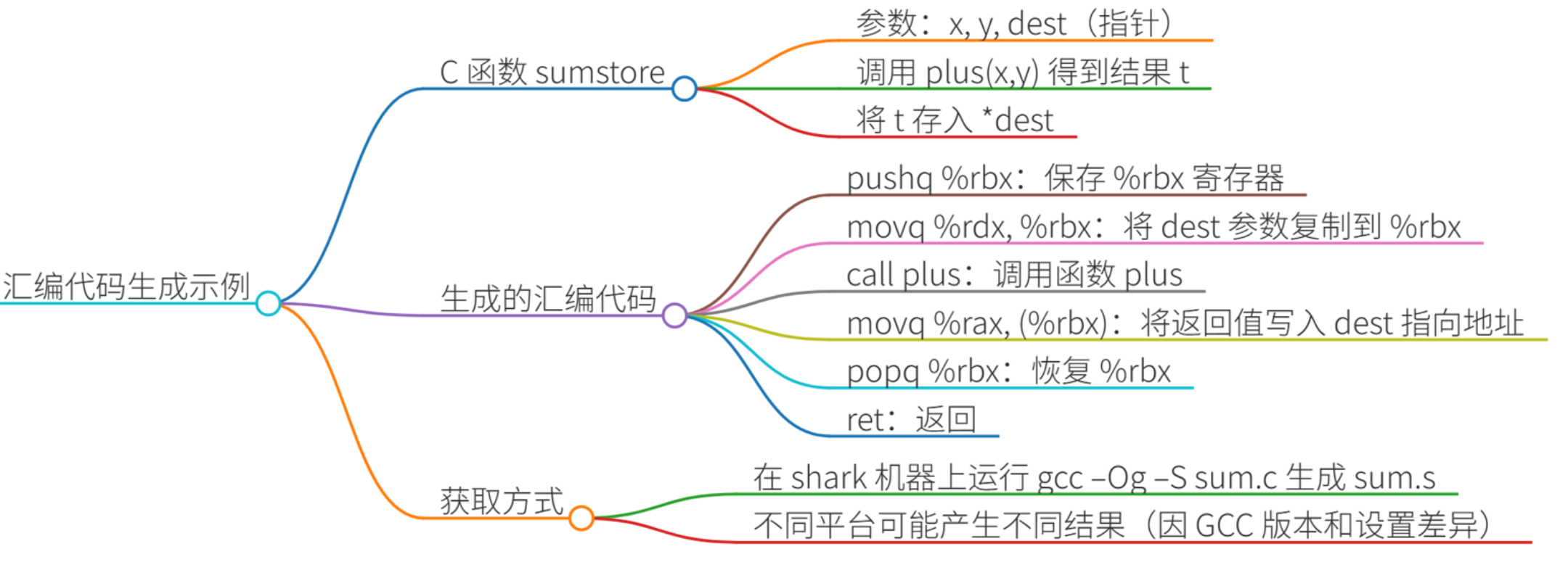 汇编代码对应C语言逻辑,以下是每条指令的功能和执行流程: