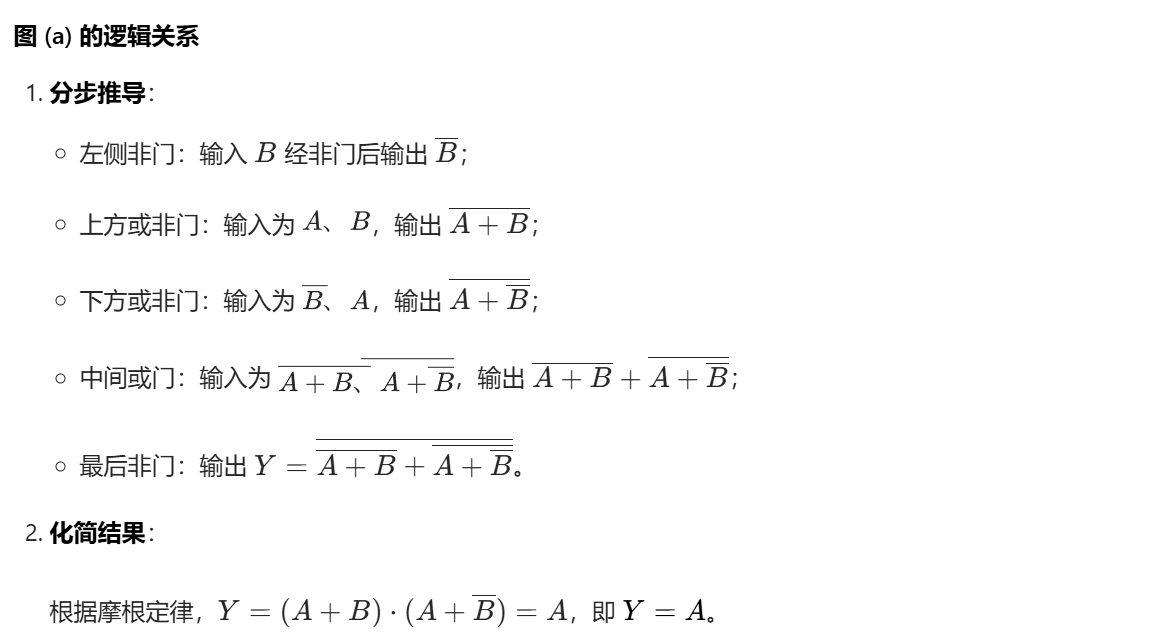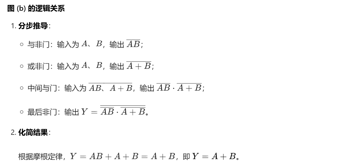 - 逻辑关系:\(F = A + B\),符合 "或门" 的逻辑特性(有 1 出 1,全 0 出 0)。