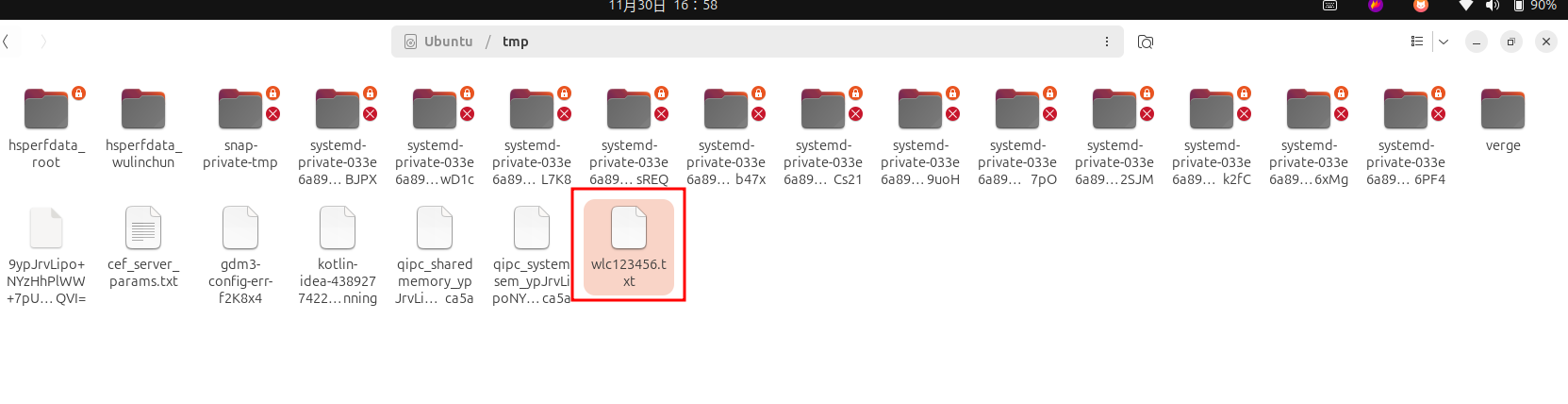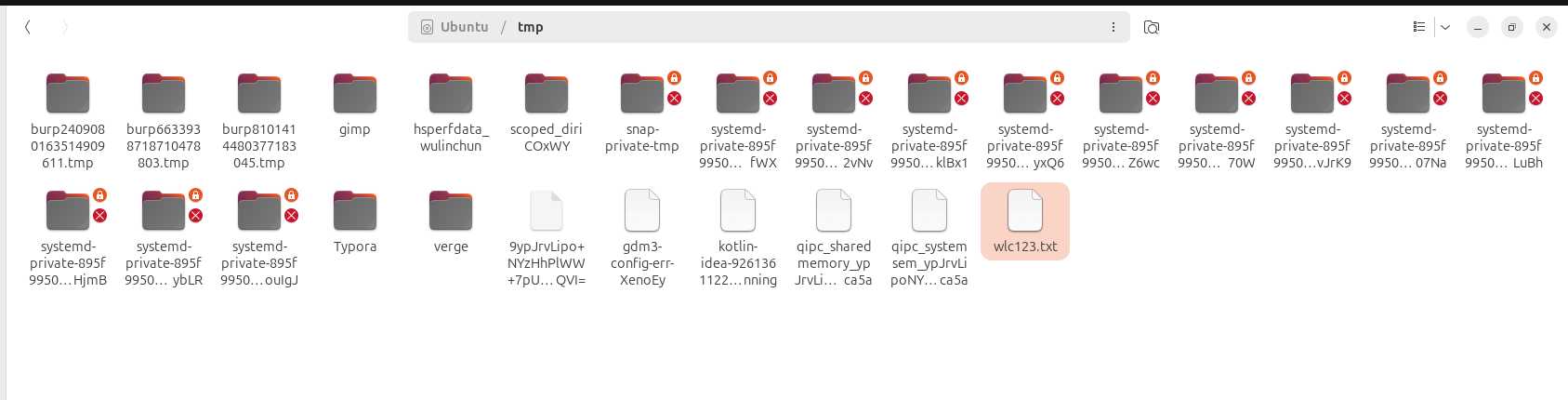 在/tmp目录下成功创建了wlc123.txt文件了。