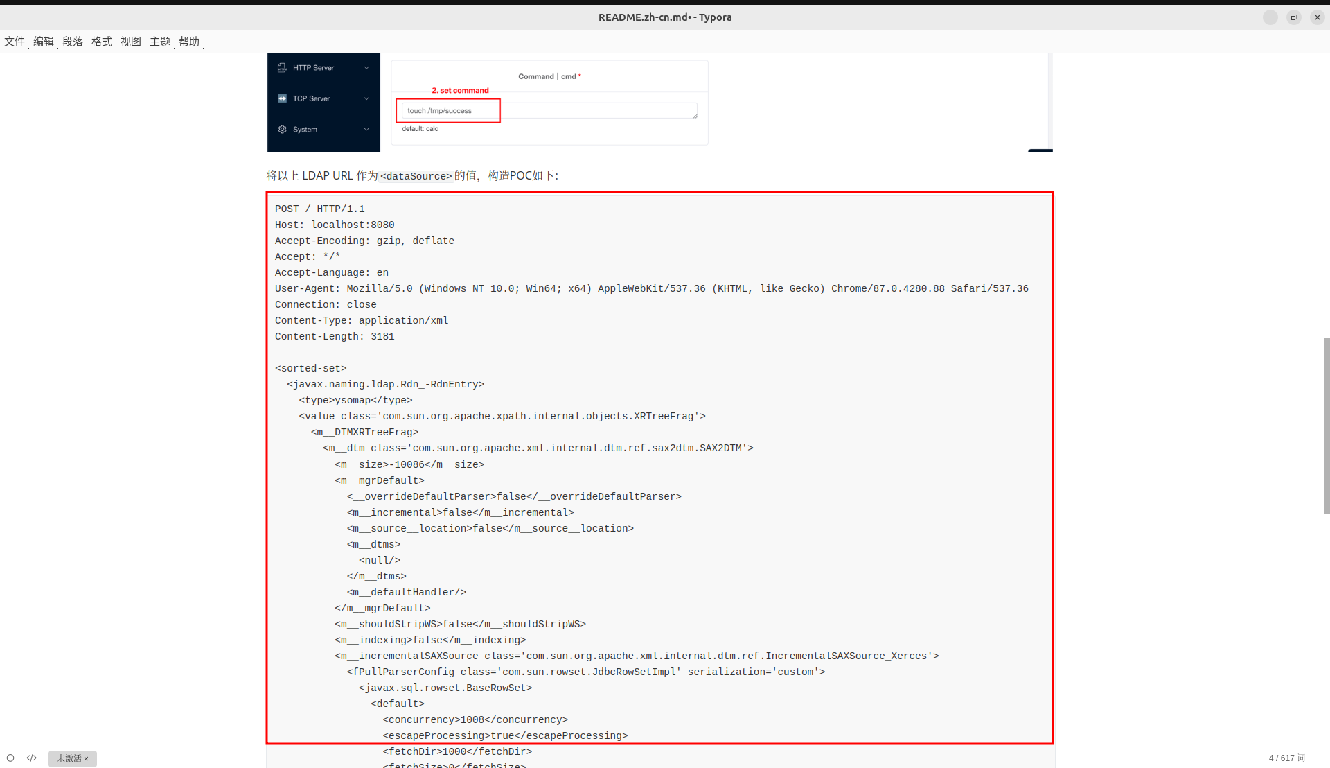 **Step3、**构造一个poc.xml脚本,用于执行攻击。