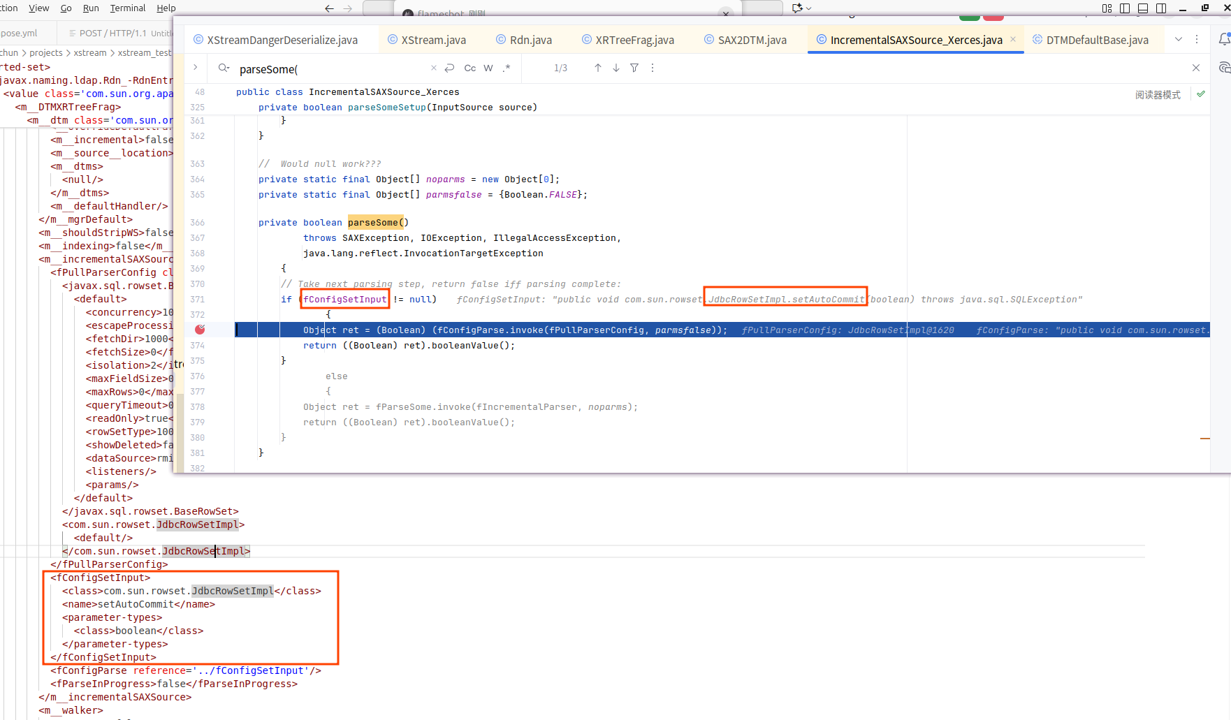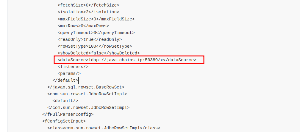 " <fPullParserConfig class='com.sun.rowset.JdbcRowSetImpl' serialization='custom'>\n" +
