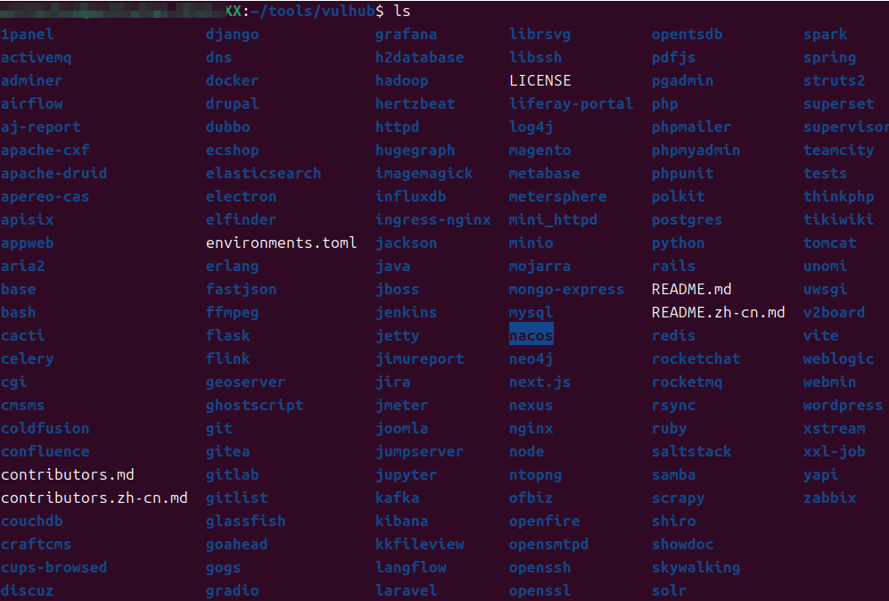 这些是vulhub漏洞靶场收集的漏洞信息,可以通过docker镜像的方式,启动漏洞靶场环境,在docker中复现漏洞。