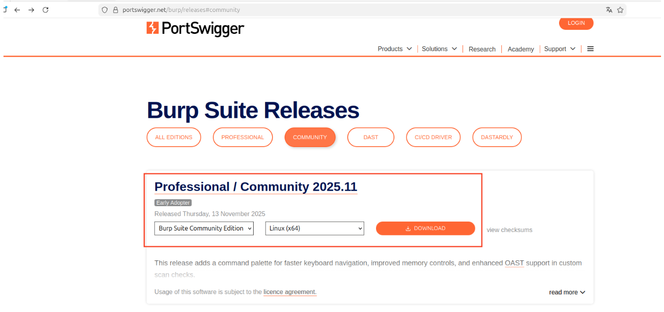 Step1、 下载Burp Suite:https://portswigger.net/burp/releases