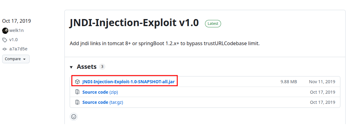 JNDI下载:https://github.com/welk1n/JNDI-Injection-Exploit/releases