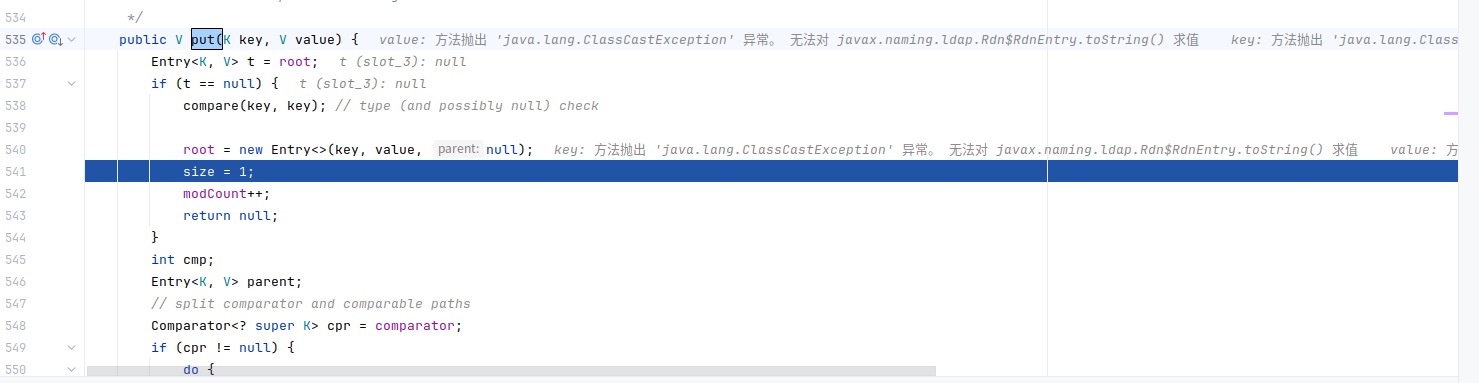在TreeSet里面add了一个Rdn类中的内部类RdnEntry的对象。而RdnEntry的value是XRTreeFrag。因为TreeSet中的元素是有序的,因此TreeSet每add一个元素,就会调用该元素中的compareTo方法进行排序。