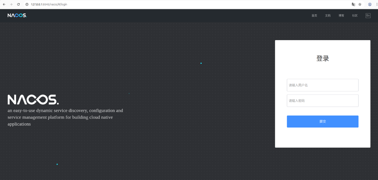 靶场环境启动成功,nacos端口是8848。访问:http://127.0.0.1:8848/nacos/#/login