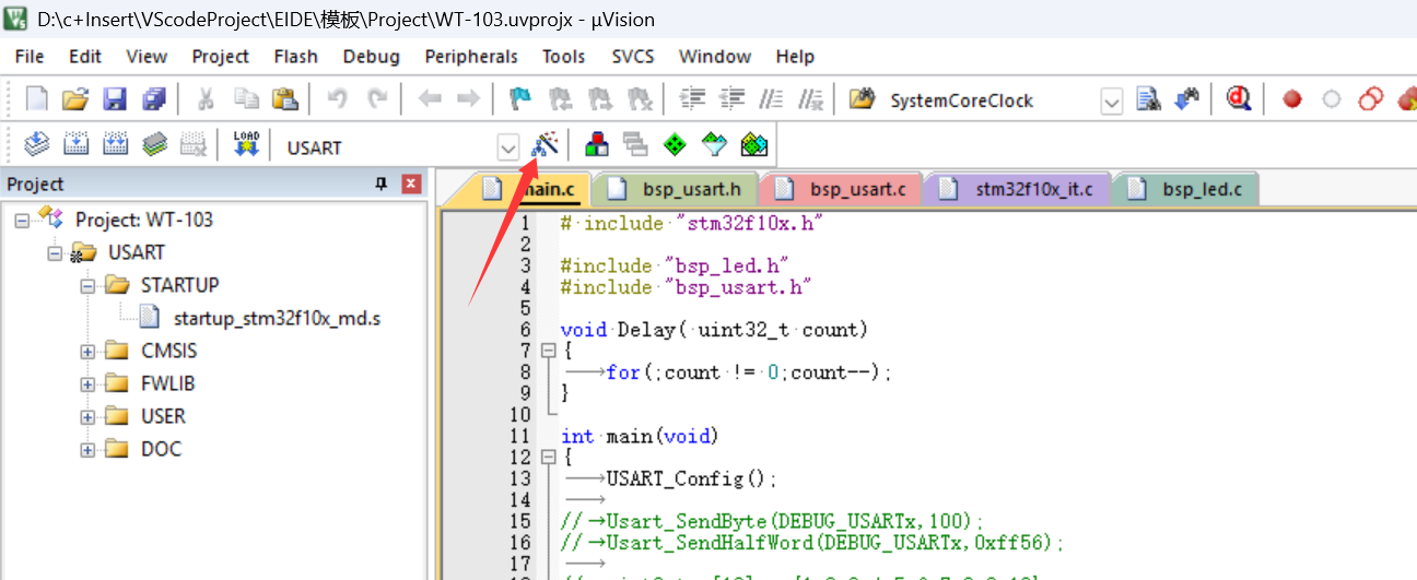 我之前入门的时候使用的是F103C8T6的芯片,但是学的教程是F103VET6的代码,这时候就可以进行移植