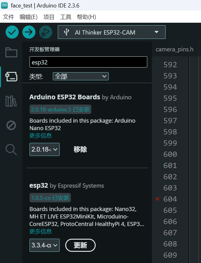 这里直接在 工具->开发板>开发板管理 里面进行搜索和下载就行,下载eso32那个就行,那个兼容第一个