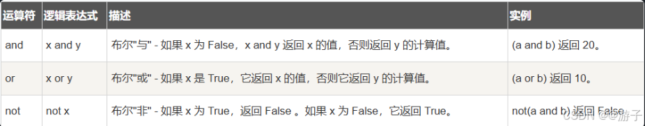 Python语言支持逻辑运算符,以下假设变量 a 为 10, b为 20: