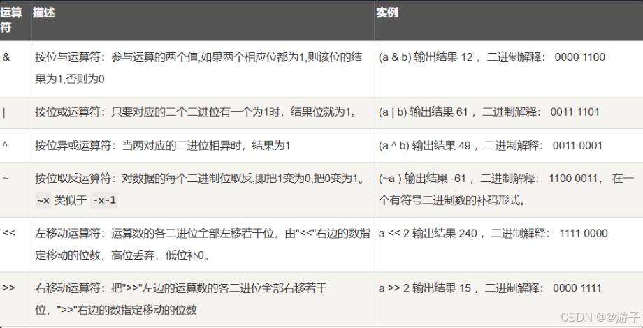 下表中变量 a 为 60,b 为 13二进制格式如下: