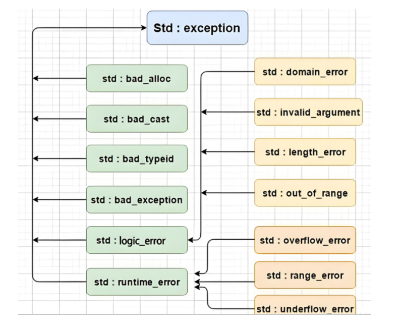 https://legacy.cplusplus.com/reference/exception/exception/日·C++标准库也定义了⼀套自己的⼀套异常继承体系库,基类是exception,所以我们⽇常写程序,需要在主函数捕获exception即可,要获取异常信息,调用what函数,what是⼀个虚函数,派生类可以重写。