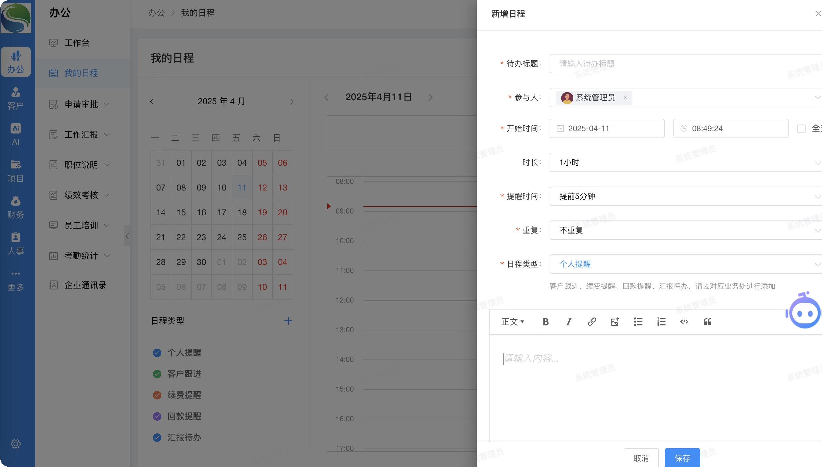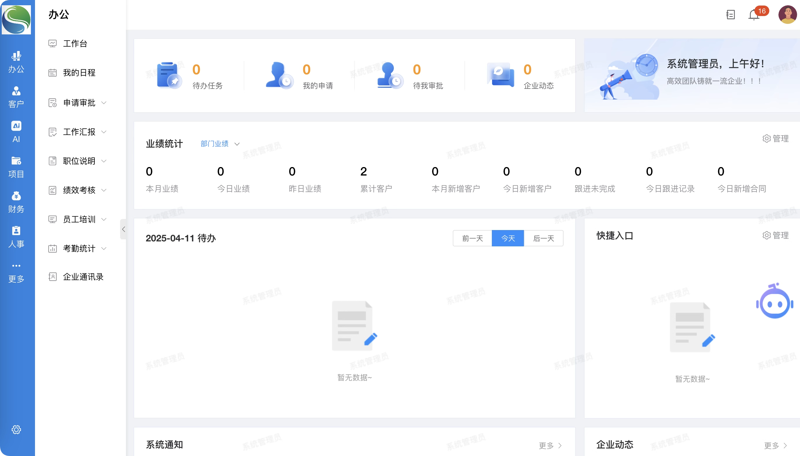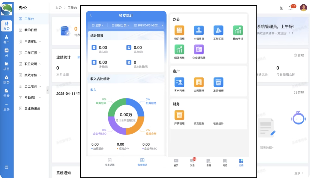 本系统为企业提供全方位的数字化智能管理解决方案,整合客户关系管理、项目全生命周期管控、智能审批流程及低代码开发平台等核心能力。通过智能化技术赋能企业运营决策,推动组织效率提升和业务模式创新。