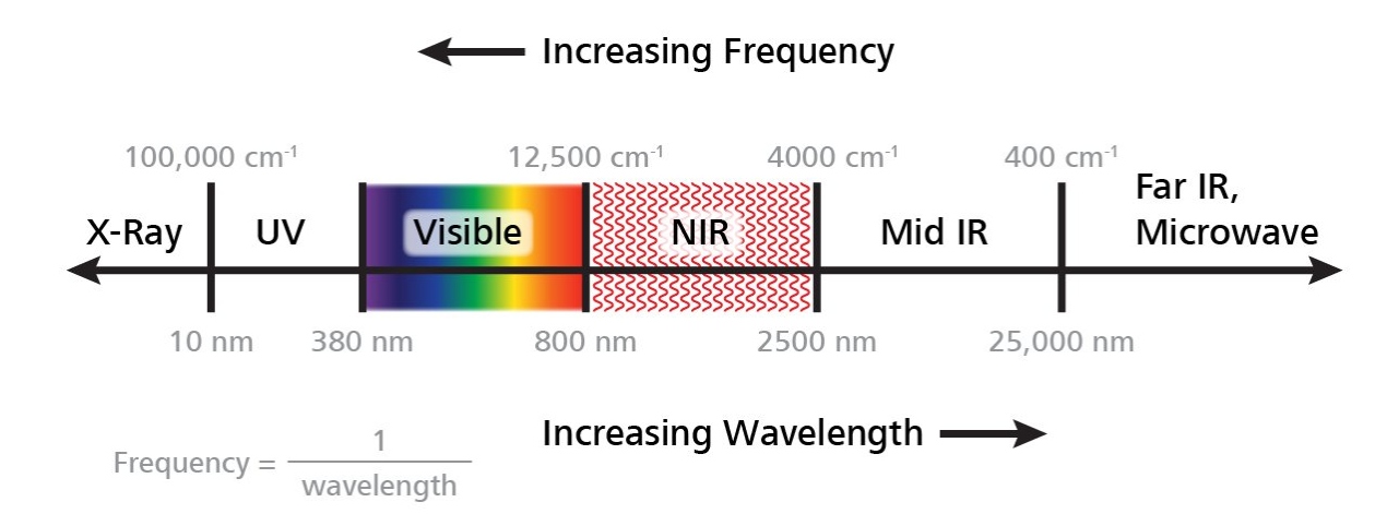 - 近红外光谱常用 4000--12800 cm⁻¹