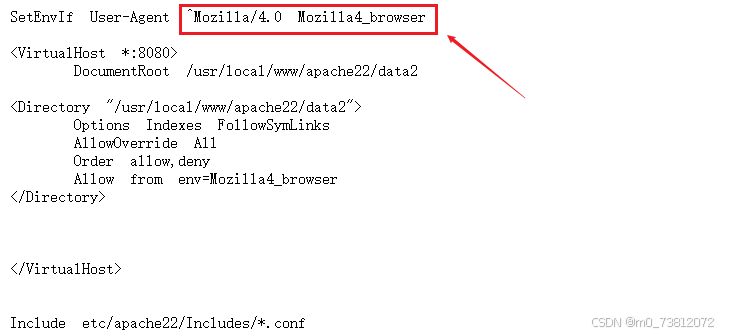 而在httpd.conf文件的最下方,Apache针对8080端口的访问请求限制了浏览器类型和版本: