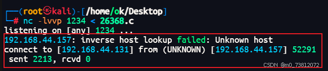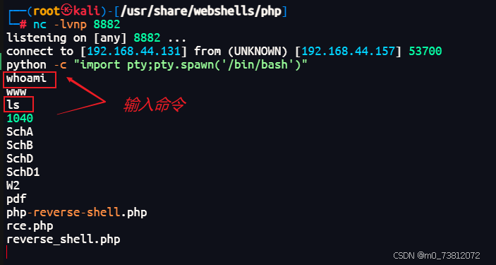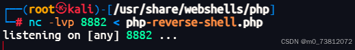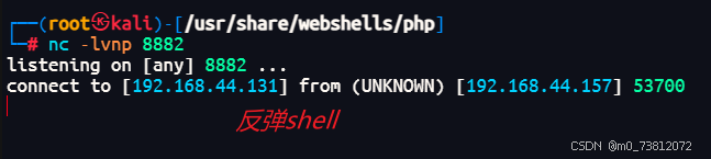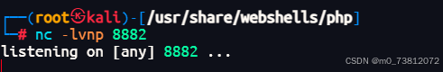 (3)完成上述操作后,kali使用如下nc命令重新监听8882端口。