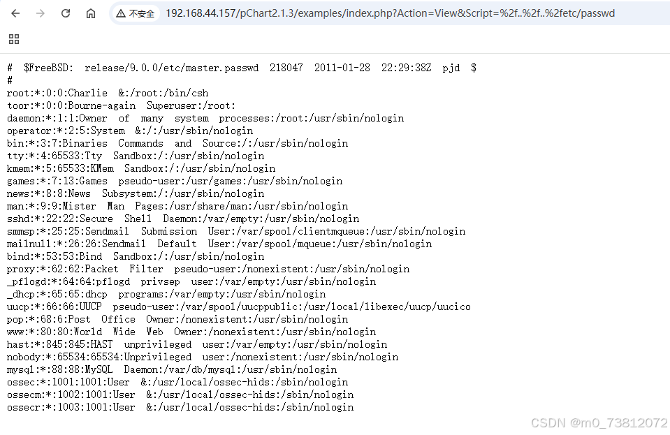 查看源代码,发现了一个可疑url:URL=pChart2.1.3/index.php