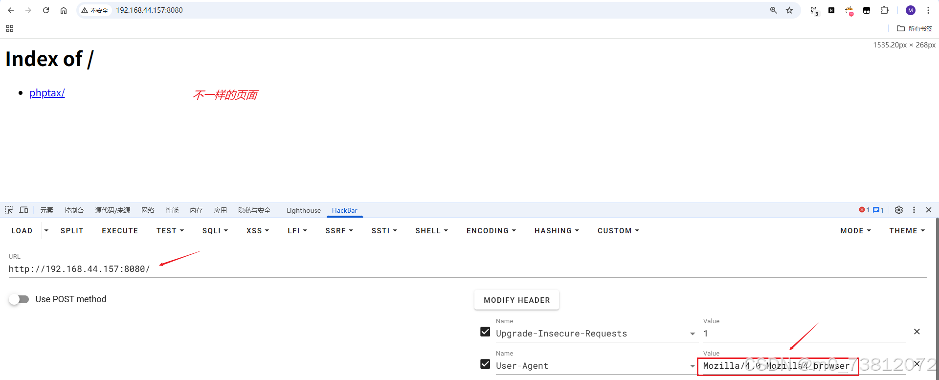 这个时候我们就可以用插件或者bp修改UA头,再去访问8080网页: