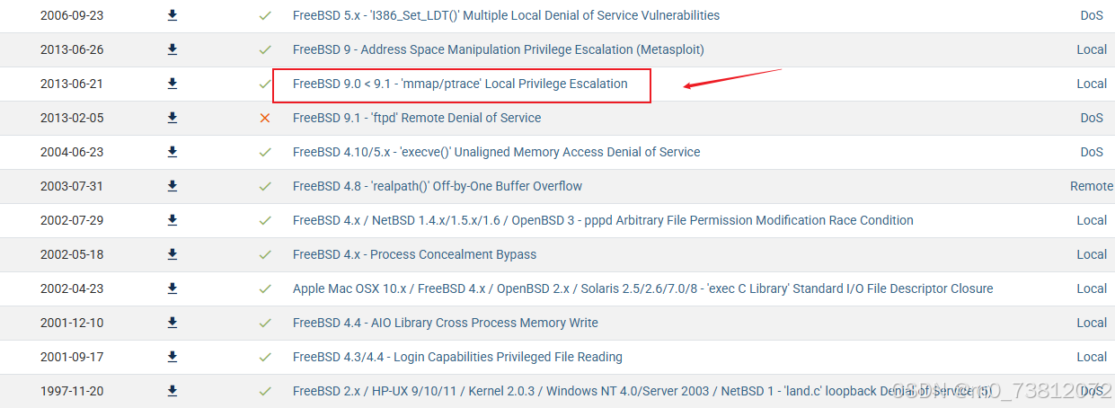 由于上述目标主机本地存在的可用程序寥寥,因此这里尝试使用系统内核提权方法来进行渗透测试;通过漏洞库,我们可以得到几个payload: