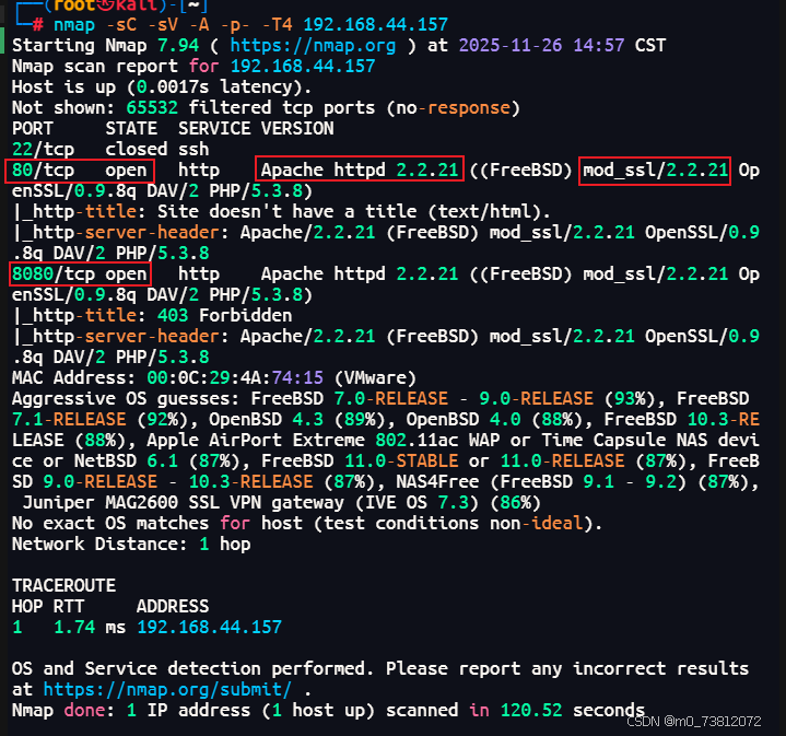 nmap -sC -sV -A -p- -T4 192.168.44.157