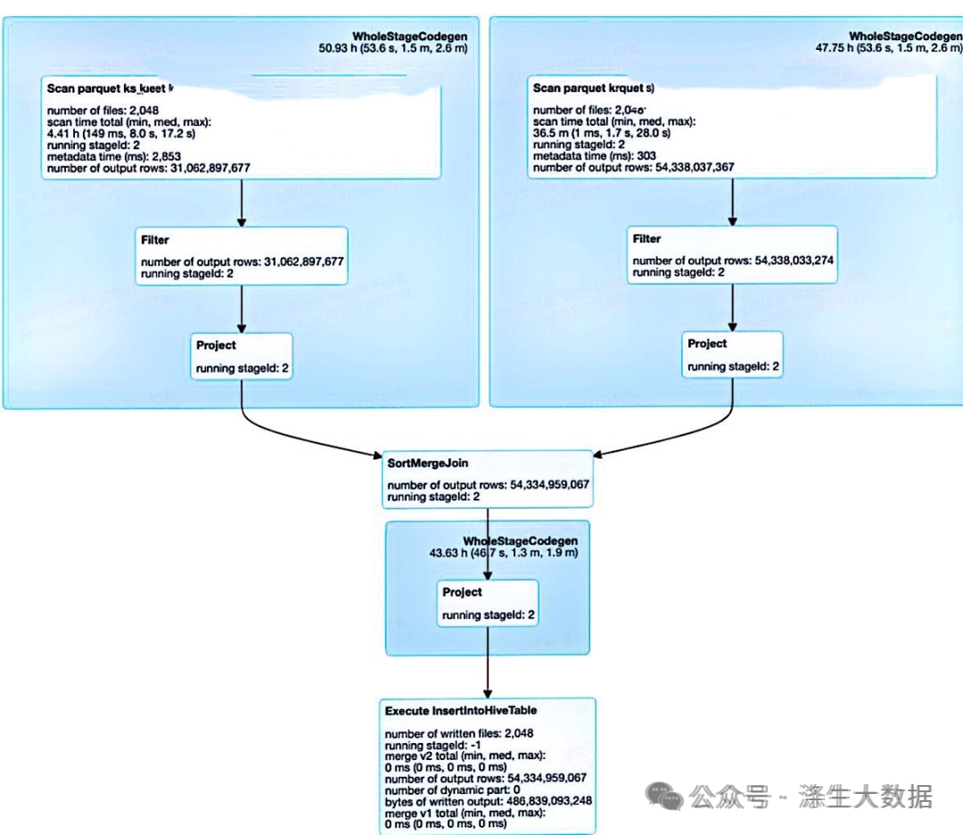 分桶表参数:两张表分桶均为2048个。单表的行数均在百亿级别。
