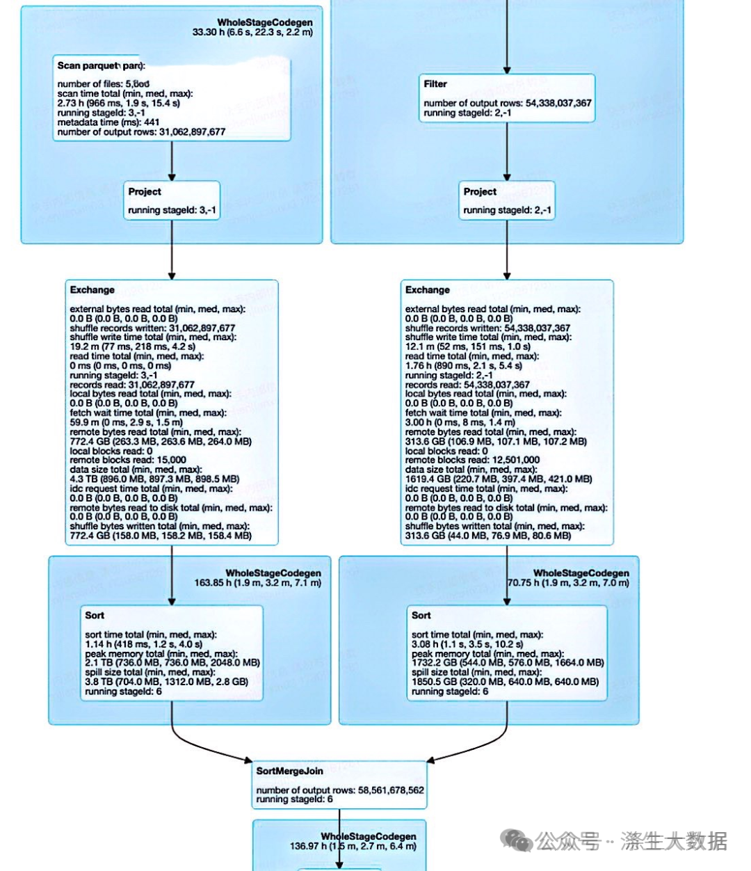 本次测试的数据规模较大,两表数据条数均在百亿级别,数据量小的话请谨慎