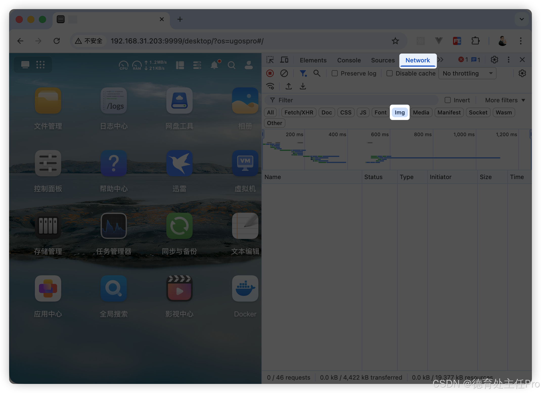 然后按 F12 打开浏览器的控制台,切换到 Network,在筛选项里选择 Img。