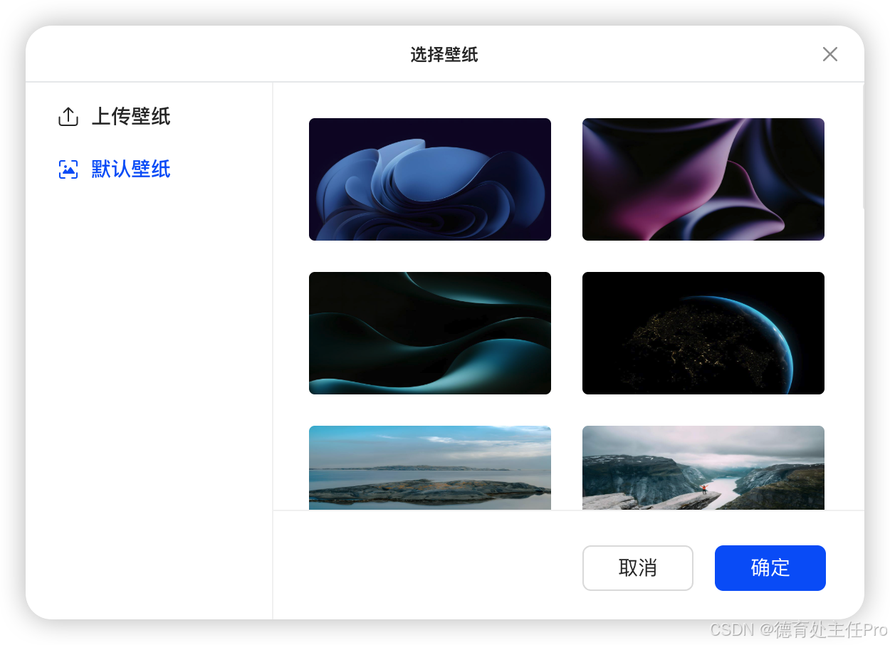 想要获取其他默认壁纸的话,可以右键绿联NAS桌面空白处,点击"个性化设置 - 更改壁纸 - 默认壁纸"里修改。