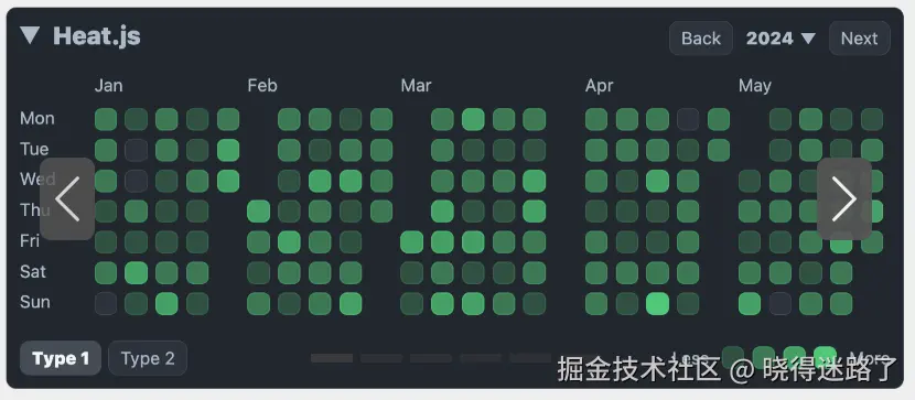 - Heat.js 4.5:热力图可视化库,无依赖项、体积小巧、支持响应式布局,且可自定义主题。