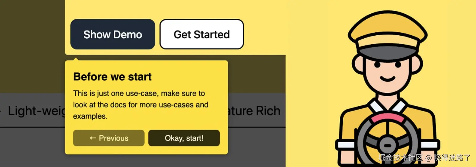 - Driver.js v1.4:这是一个原生 JS 库,用于创建页面引导和情境化帮助功能。该库已推出数年,但至今仍在维护更新,且提供了大量示例可供参考,同时使用体验十分流畅。
