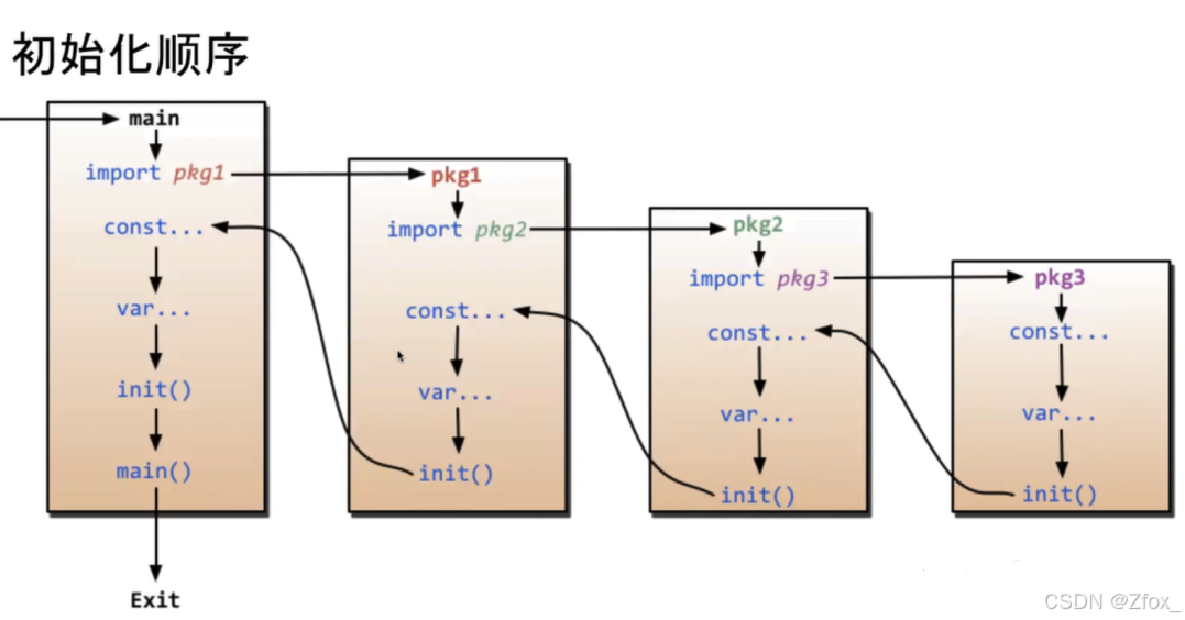 当一个包被导入时,如果该包还导入了其它的包,那么会先将其它包导入进来,然后再对这些包中的包级常量和变量进行初始化,接着执行init函数(如果有的话),依次类推。