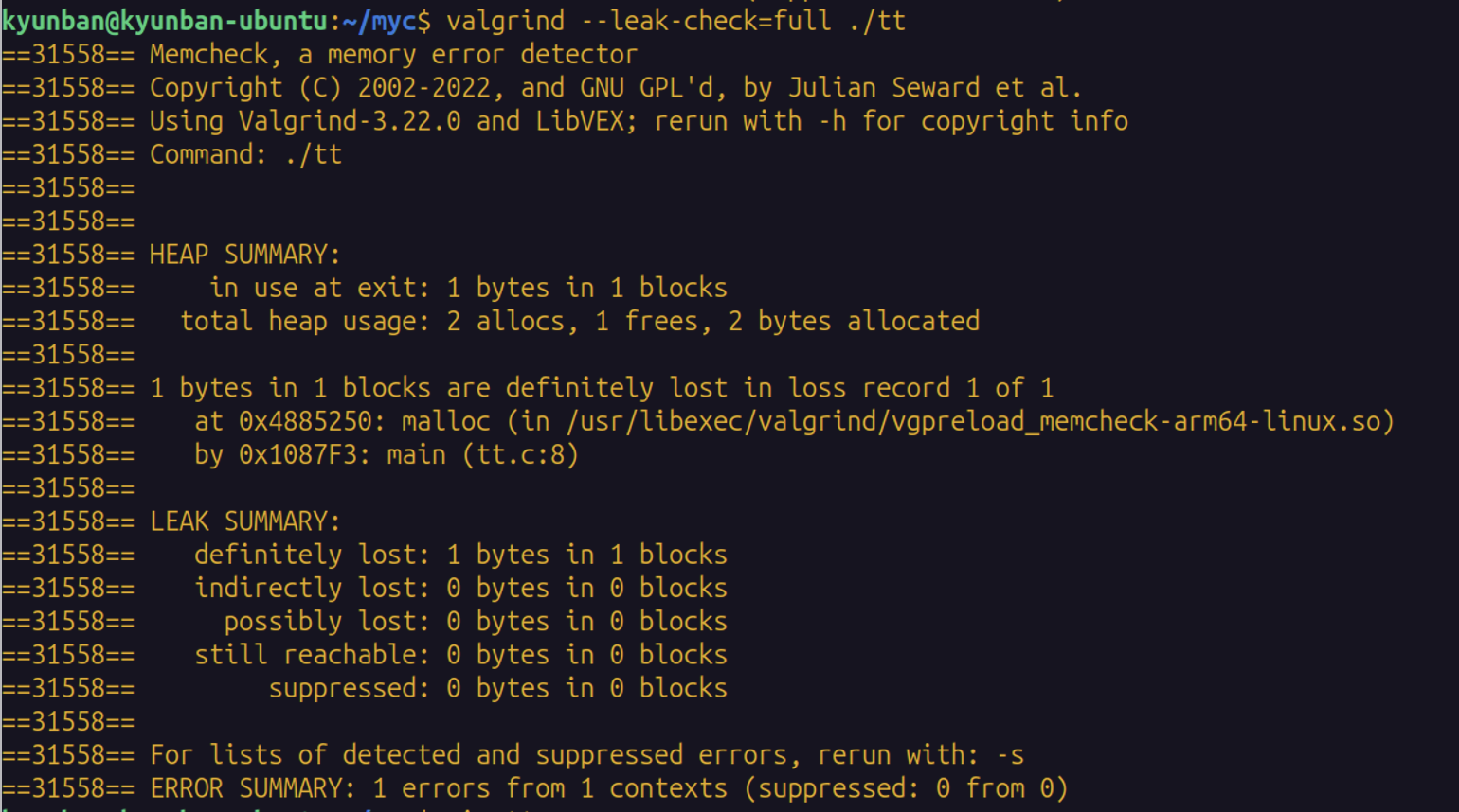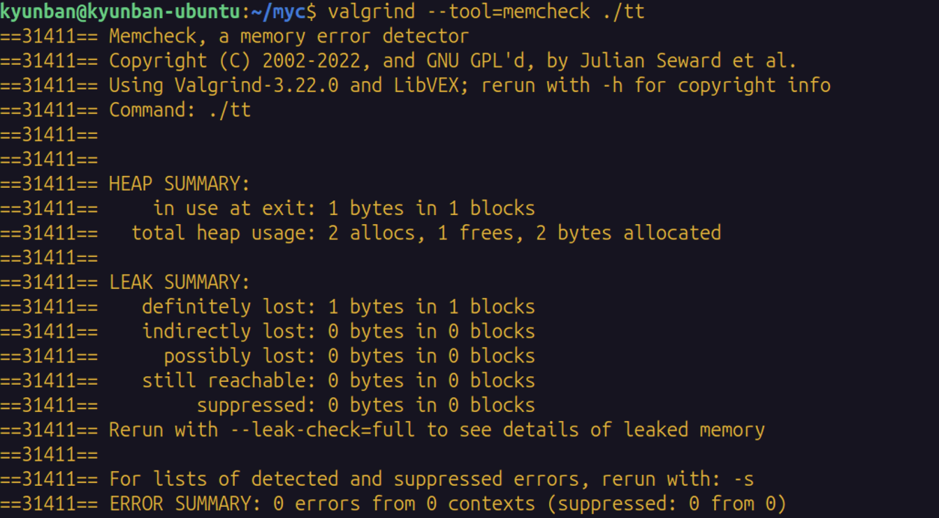 valgrind --tool=memcheck ./tt