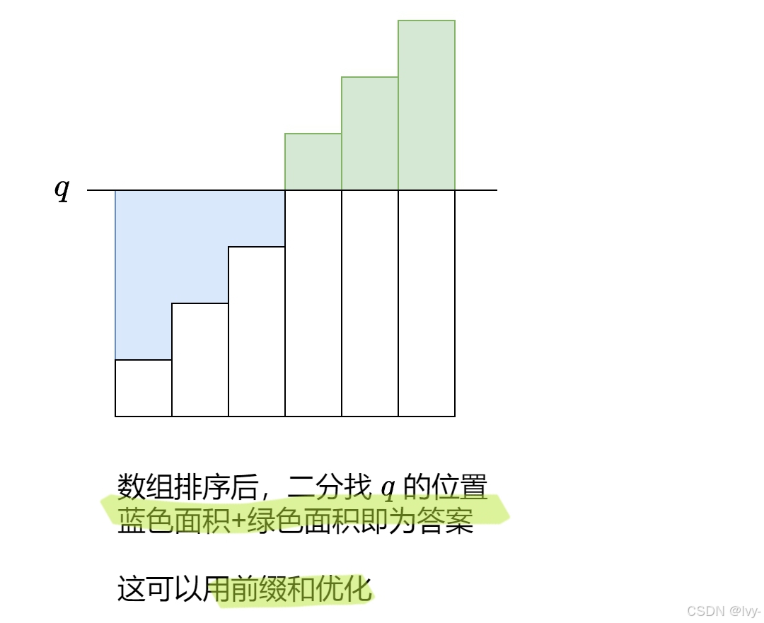 ++right = sum[n] - sum[j] - q * (n - j); // 绿色面积++