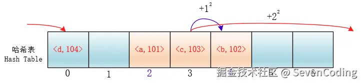di=12,-12,22,-22,...,k2,-k2;这种方法的特点是:冲突发生时,在表的左右进行跳跃式探测,比较灵活。虽然平方探测法解决了线性探测法的一次聚集,但是它也有一个小问题,就是关键字key散列到同一位置后探测时的路径是一样的。这样对于许多落在同一位置的关键字而言,越是后面插入的元素,探测的时间就越长。