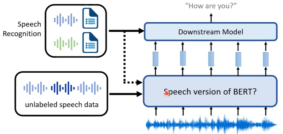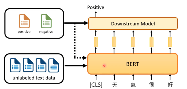 回顾了自监督学习在文本领域的应用,以BERT为例:它通过无标签文本进行预训练,能为每个输入字符生成对应向量。为执行情绪分析等具体任务,需在BERT生成的向量基础上,利用有标签数据训练一个分类模型,并可进一步对BERT本身进行微调,使其更好地适应下游任务。