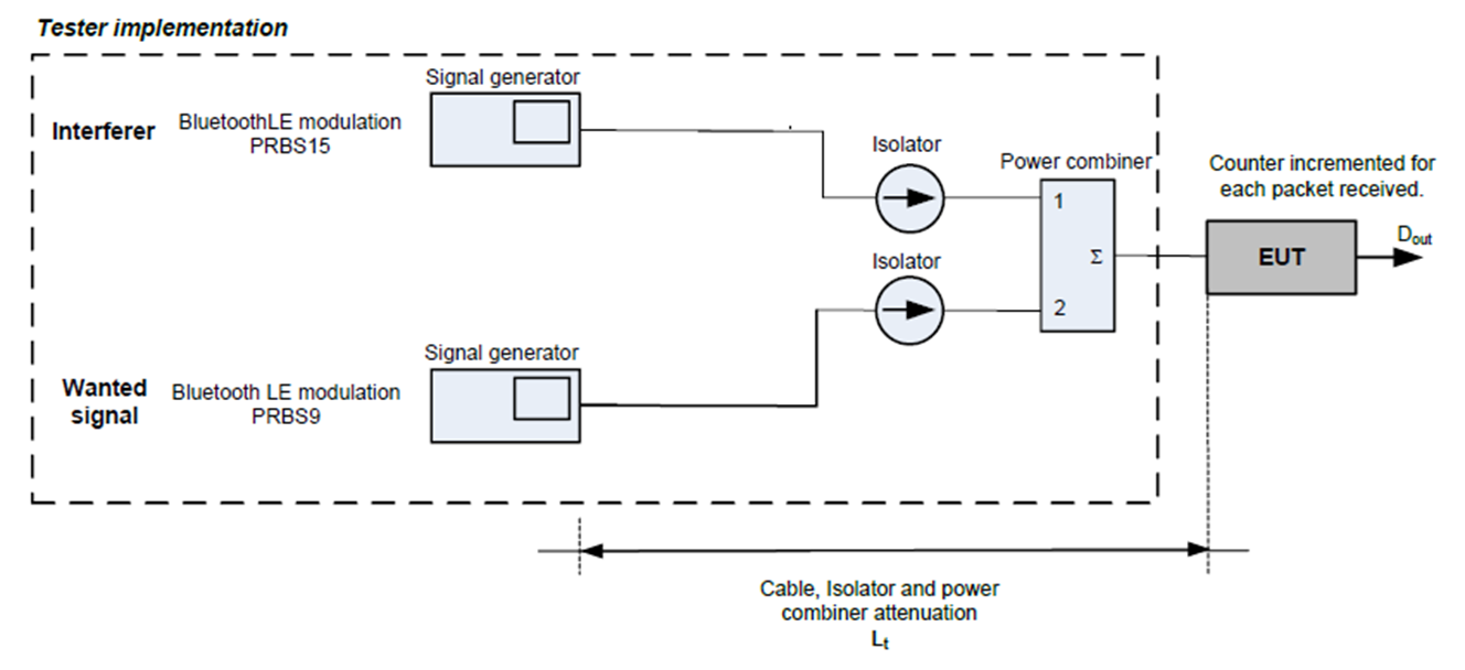 测试核心是评估待测设备(EUT)在有用信号与蓝牙干扰信号共存时的接收性能