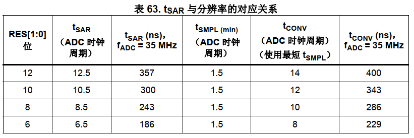 设置了采样周期为1.5个周期,采样四个通道(多少个通道就需要乘多少倍),没有配置过采样(如果有过采样需要再乘以过采样倍数),且从下列表格可见12位AD的固定需要12.5个周期