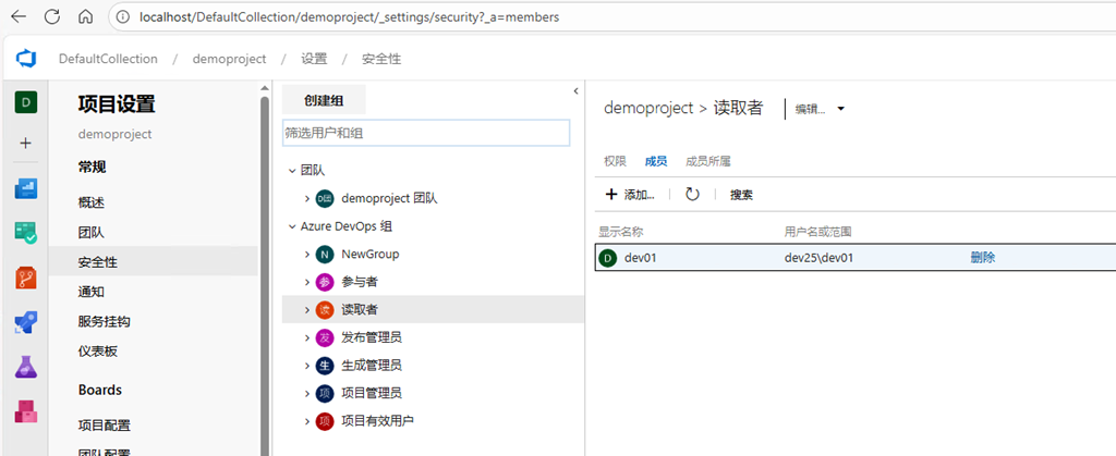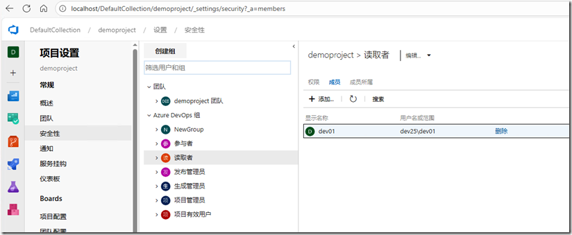 首先,将用户添加到读取者(Readers)组中;也可以创建一个特定的组,将成员添加到这个组中。